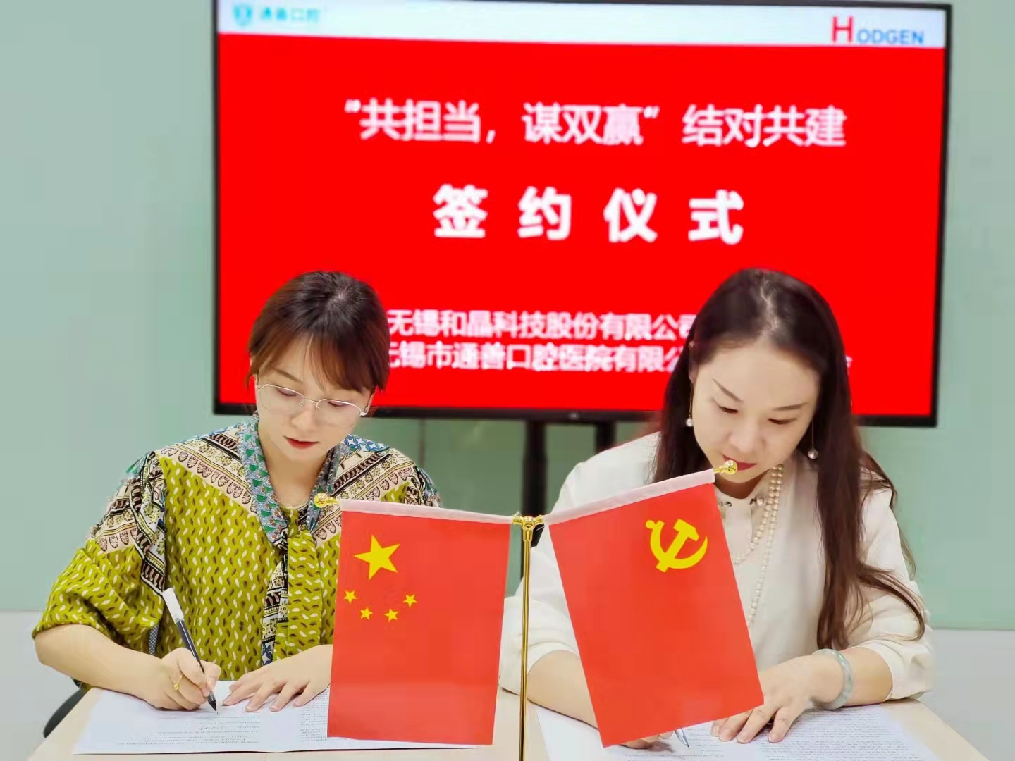 為進一步促進黨建優(yōu)勢互補,激發(fā)黨組織活力,9月29日下午,無錫和晶科技股份有限公司黨支部與無錫通善口腔醫(yī)院有限公司黨支部在和晶科技會議室舉行了結(jié)對共建簽約儀式。
